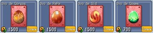 Os ovos dos mascotes Gon, Pepe e Sid custam 1500 P↑, que podem ser adquiridos marcando presença no diário por 15 Dias.